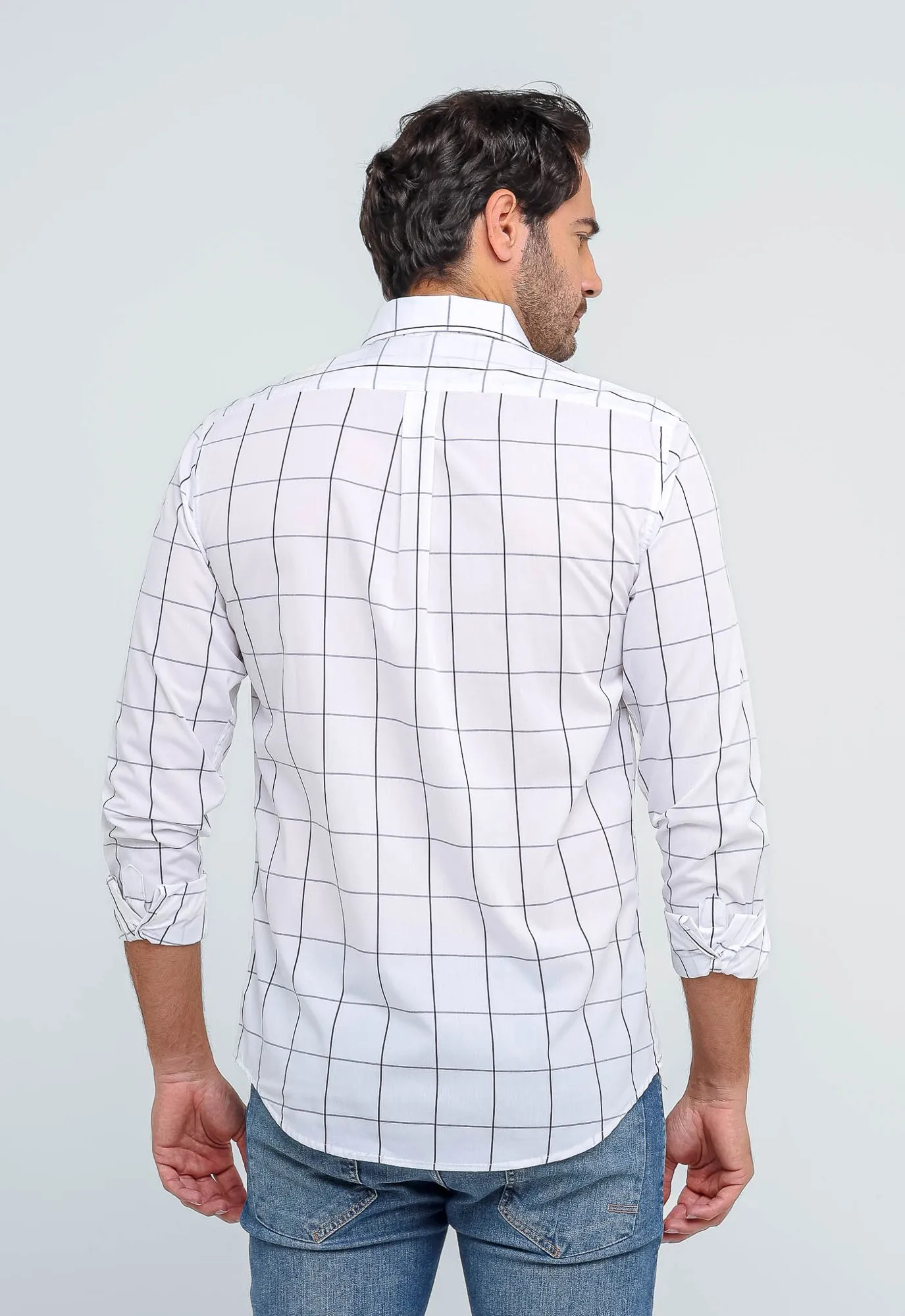 Camisa Hombre a Cuadros Blancos Grande Manga Larga