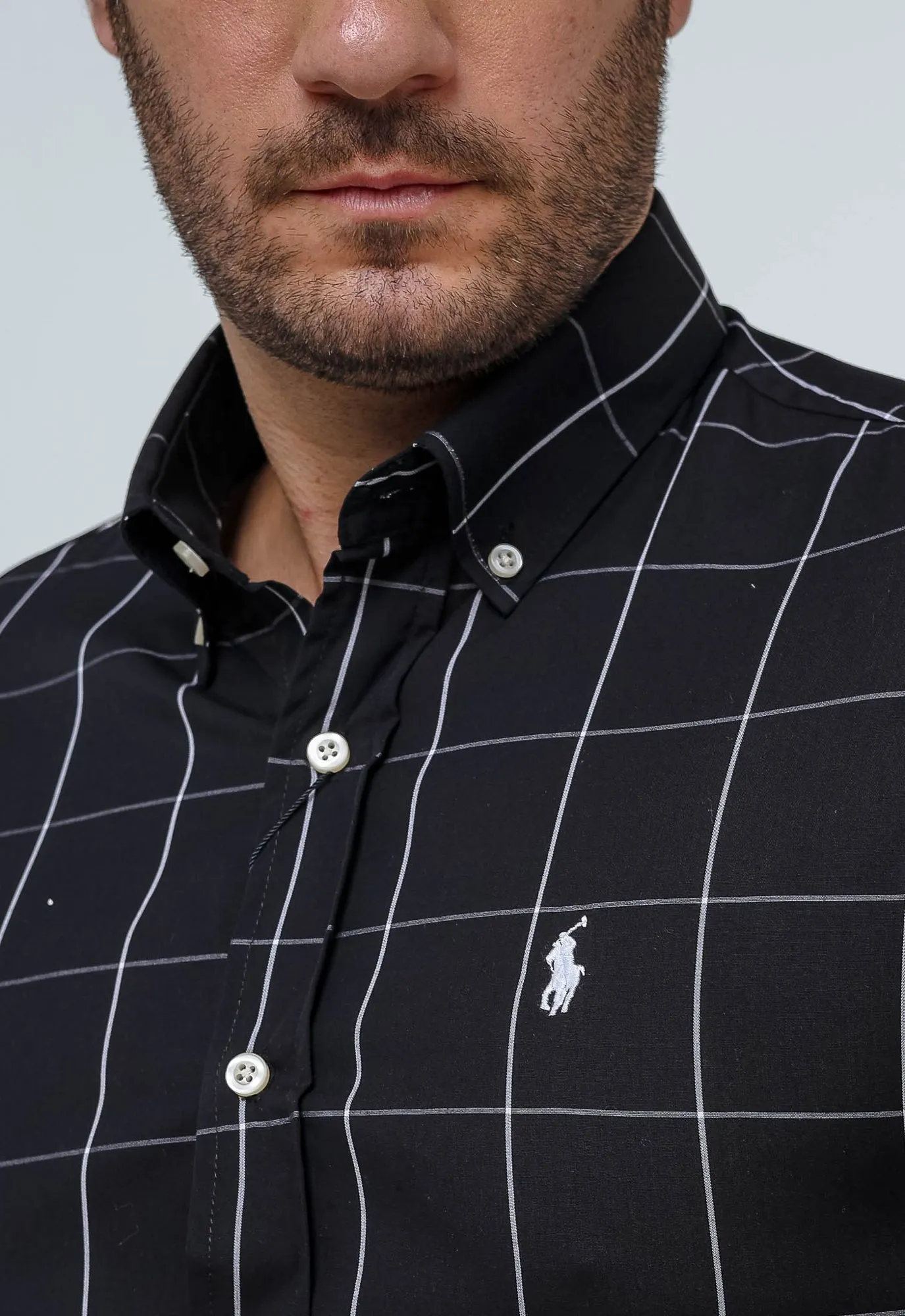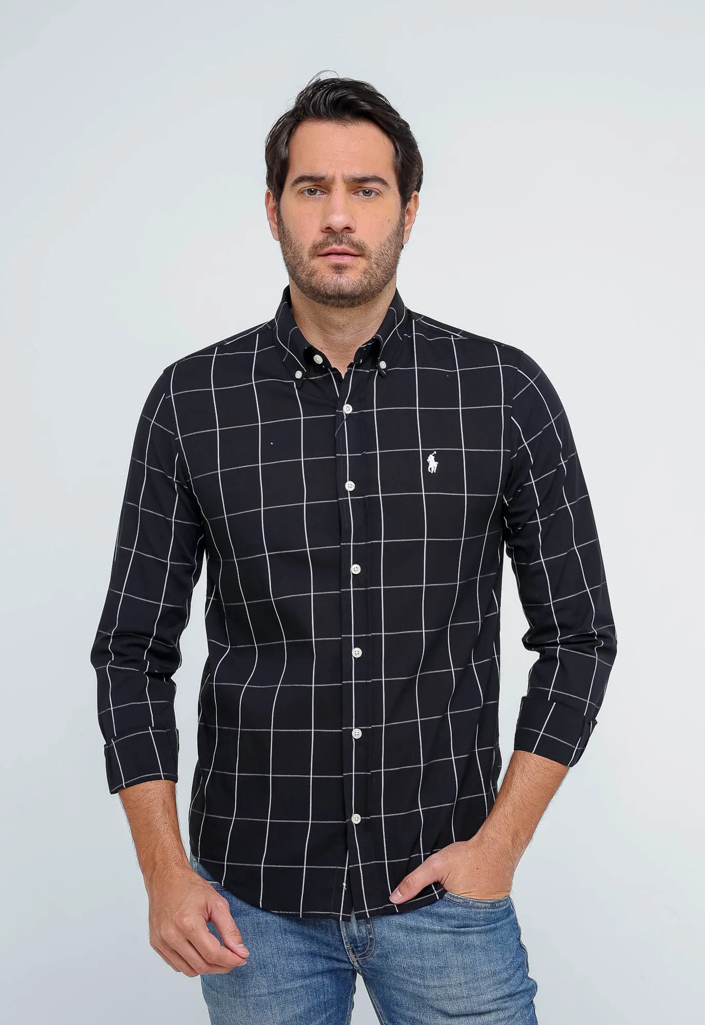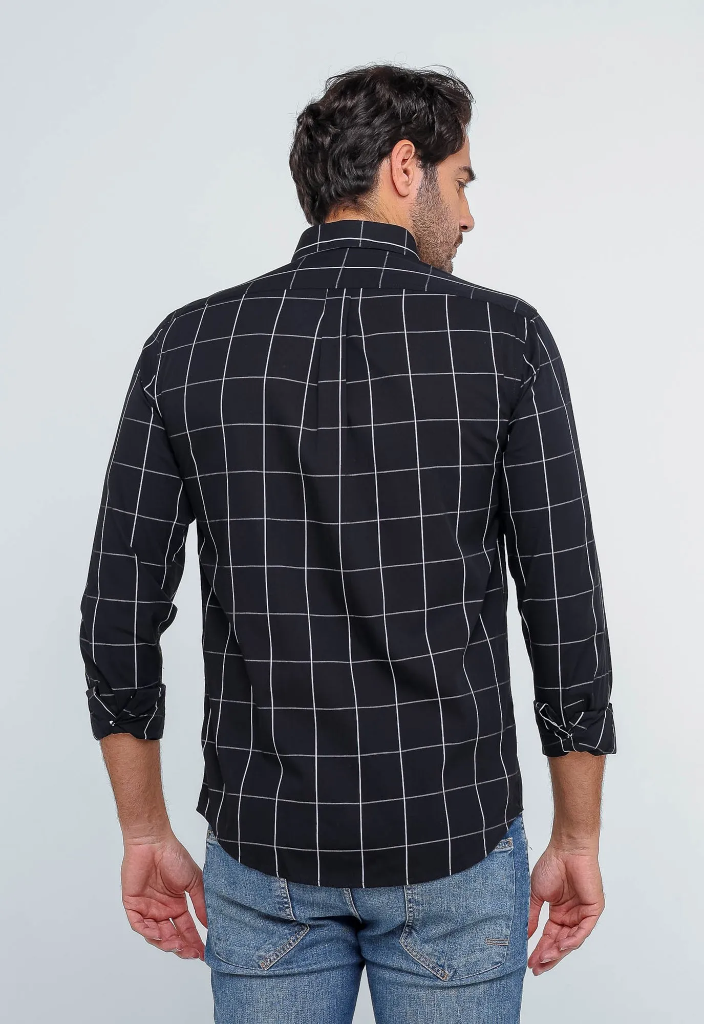 Camisa Hombre a Cuadros Negros Grande Manga Larga