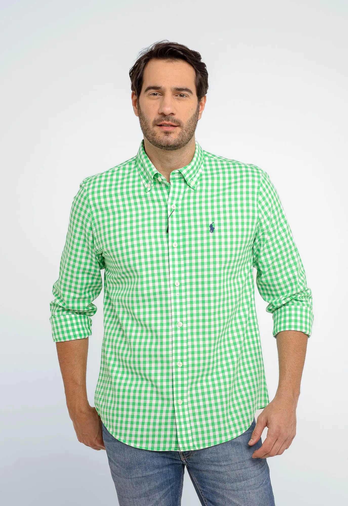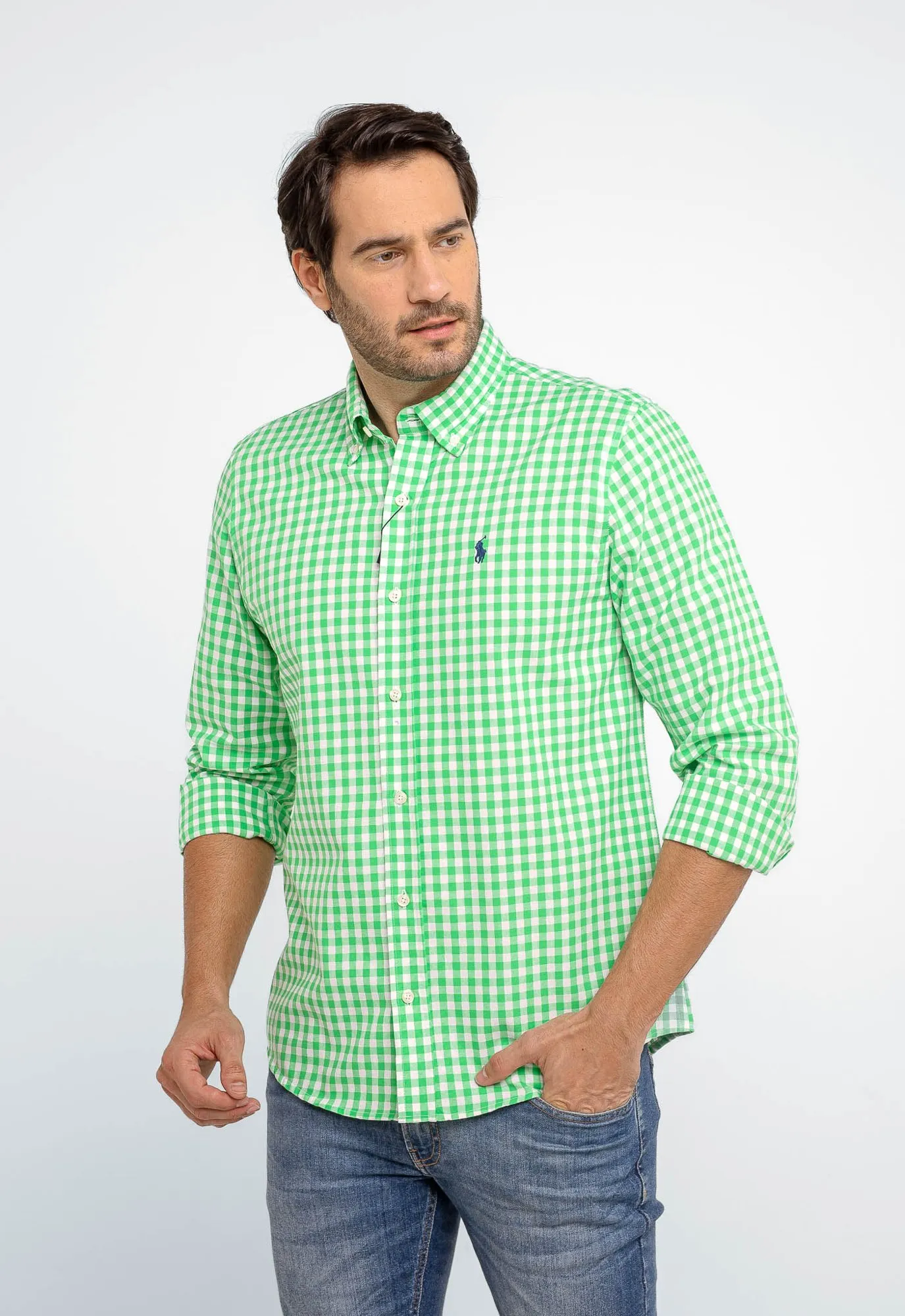 Camisa Hombre Cuadros Verdes Claros